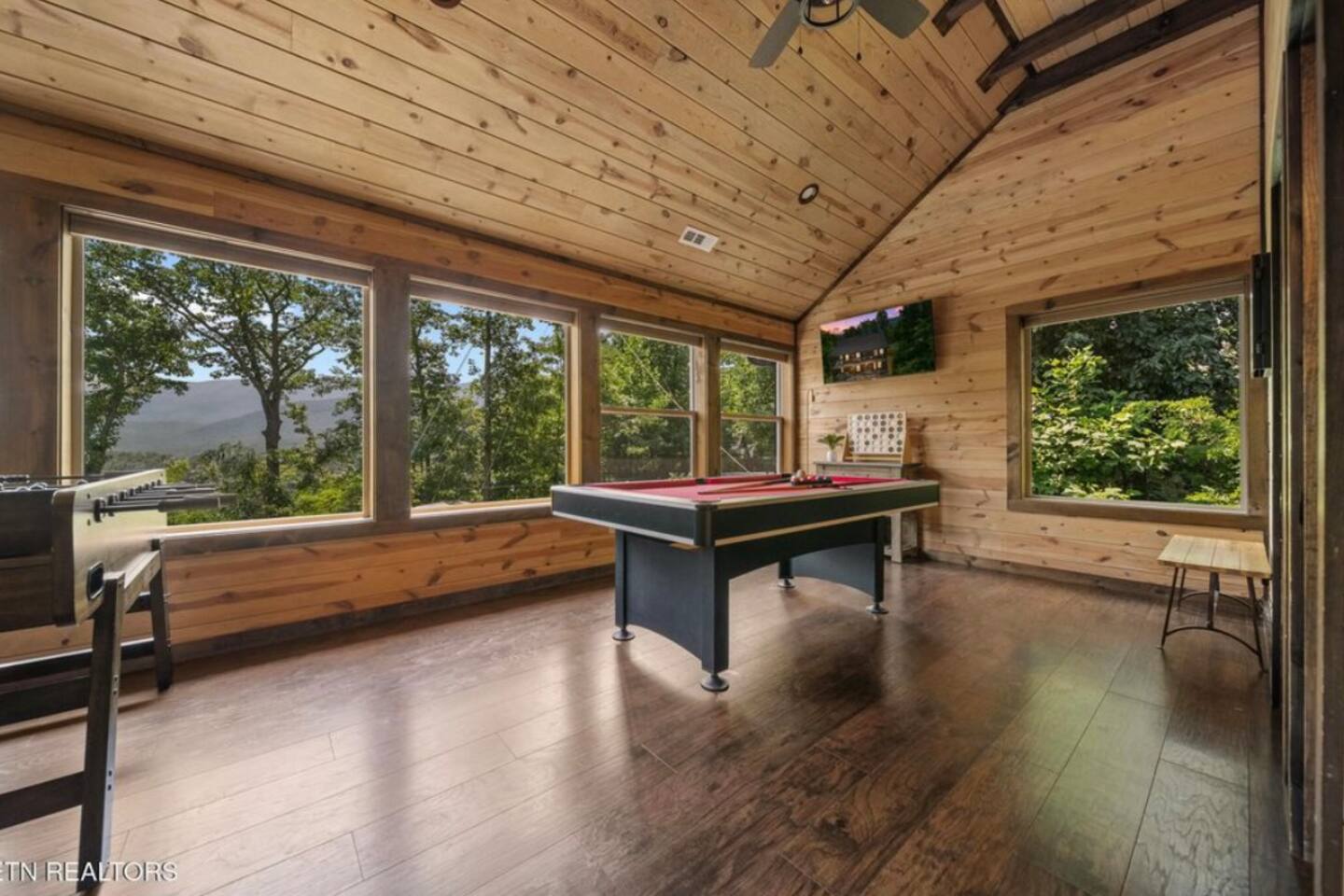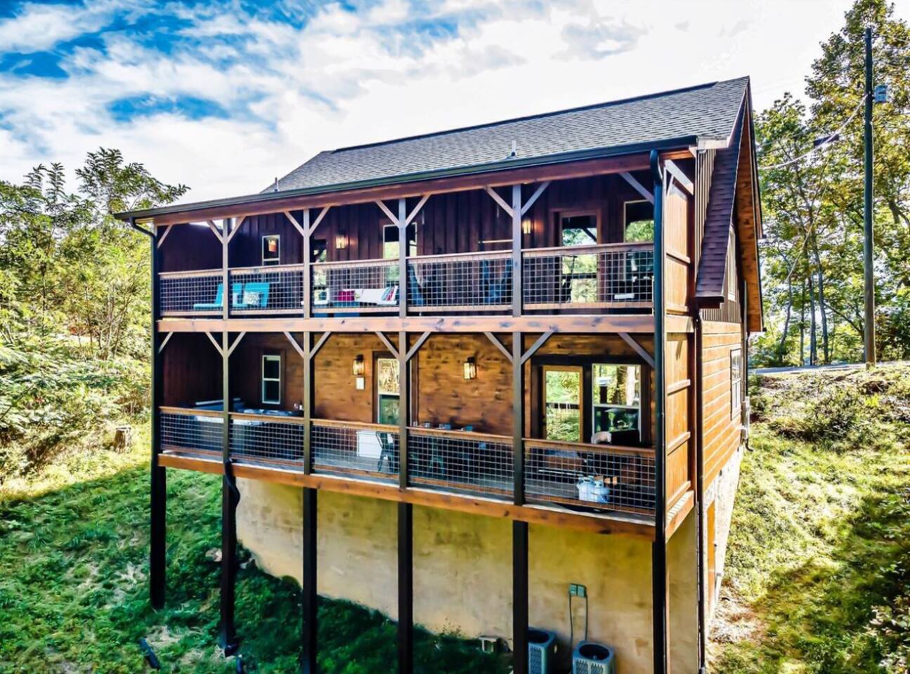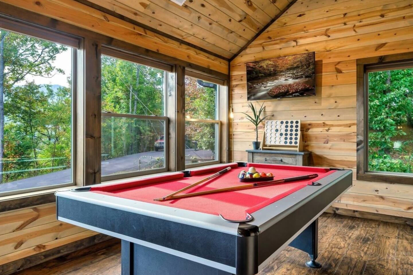 Tucked in the Great Smokey Mountains, this new modern luxury cabin has multiple areas and levels for all ages to enjoy and spread out in. With both Mountain (front) and Forest views (rear) enjoy peaceful seclusion while escaping the traffic and congestion of near by Gatlinburg and Pigeon Forge. - 3 Community Pools (Open Memorial Day to Labor Day) - 2 Pickleball courts - Golf Course on property - Highspeed Internet - 82" Samsung TV in theater portion of game room -Smart door lock; self check-in