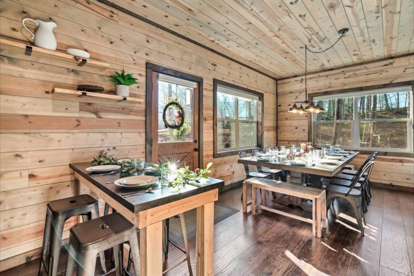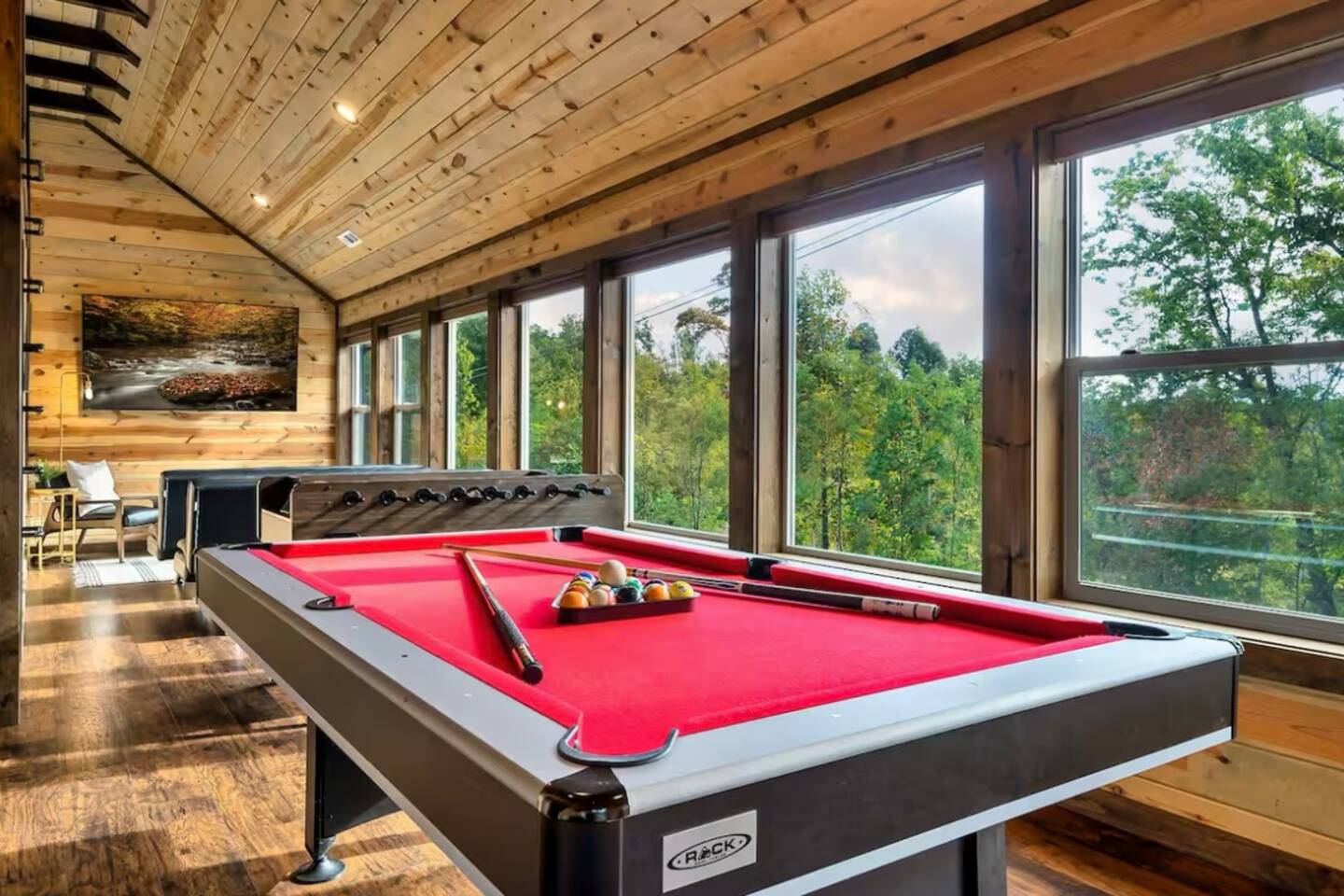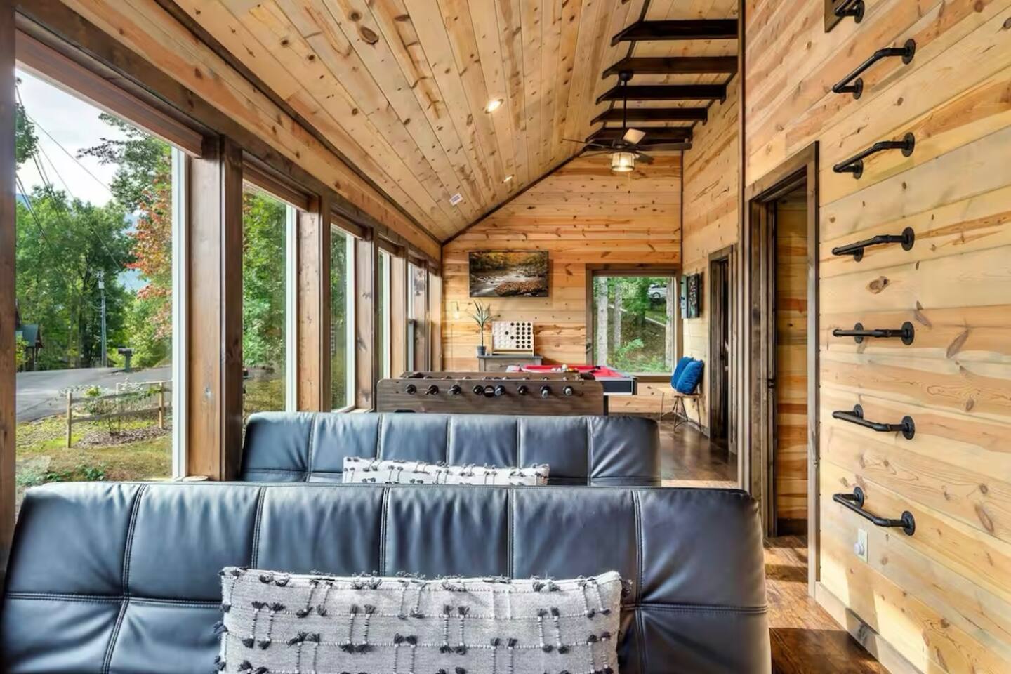 Tucked in the Great Smokey Mountains, this new modern luxury cabin has multiple areas and levels for all ages to enjoy and spread out in. With both Mountain (front) and Forest views (rear) enjoy peaceful seclusion while escaping the traffic and congestion of near by Gatlinburg and Pigeon Forge. - 3 Community Pools (Open Memorial Day to Labor Day) - 2 Pickleball courts - Golf Course on property - Highspeed Internet - 82" Samsung TV in theater portion of game room -Smart door lock; self check-in